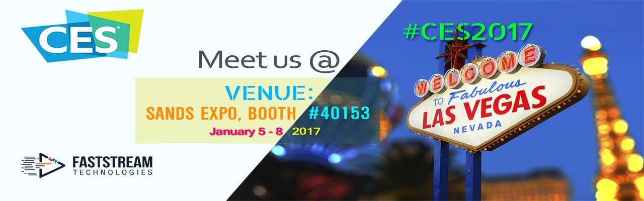 To schedule a meeting, contact us @ +1310-491-0410 or info@faststreamtech.com. Also, you can connect with us on Twitter @faststreamtech. We will be available at Sands Expo, Booth #40153, Las Vegas, Nevada, the United States between Jan 5-8, 2017.