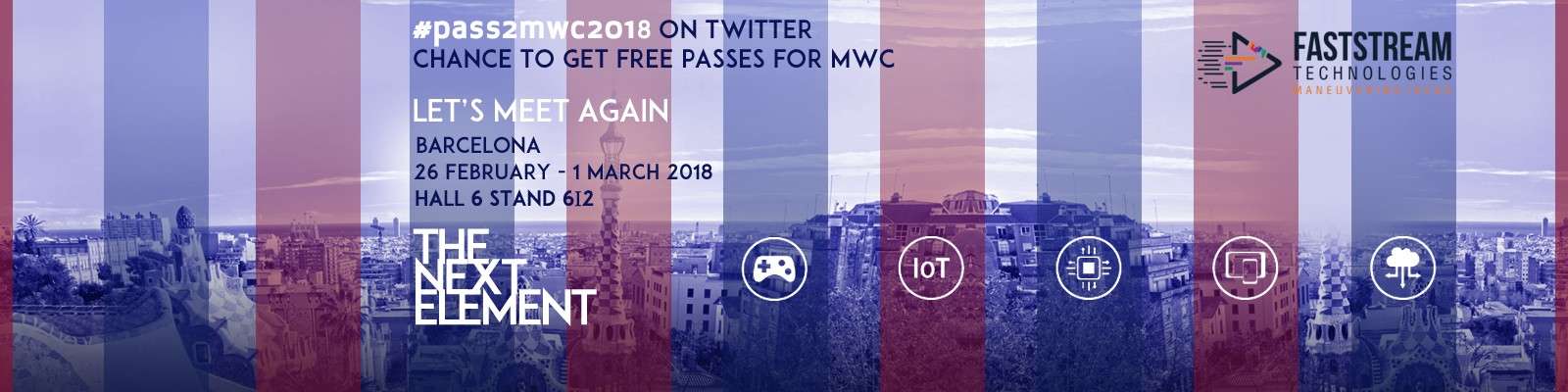 To participate use#pass2mwc2018 or #MWC18 in all your tweets and tag @faststreamtech in all your tweets related to MWC.