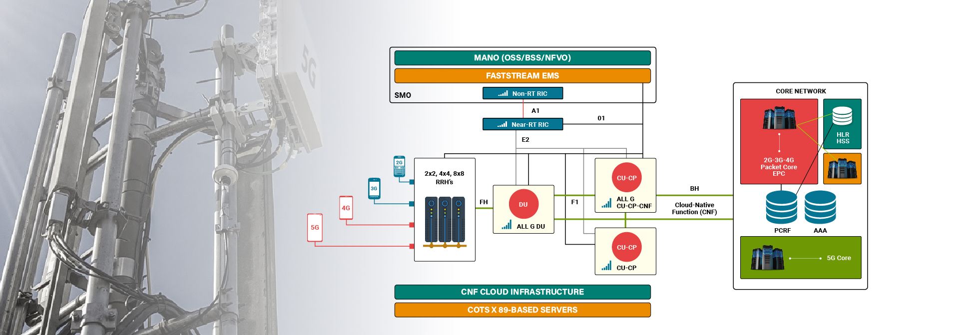 Faststream’s datacenter-native software simplifies, optimizes, and accelerates network deployment. Our software-based, unified design supports not just newer technologies such as 5G and 4G, but also older networks such as 2G and 3G.